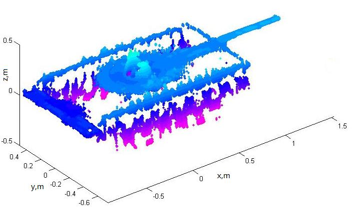 毫米波人体成像技术可通过在目标空间安置设备并通过采集设备的自转收集的毫米波信息实现。由设备高速旋转中收集的数据,通过数据处理生成的人体“透视”图。