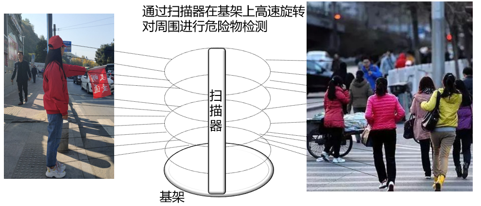 在保护隐私条件下,实现危险物的检测和自动识别。依靠毫米波雷达实现不涉及隐私的穿透技术,实现对于人体是否携带危险物的检测。加入AI技术,完成对于危险物自动检测并识别的进一步实现。
