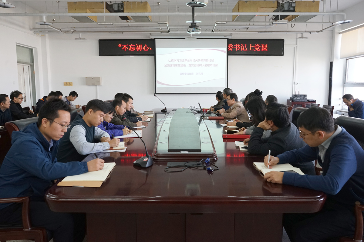 根据学院主题教育安排,10月29日上午,必赢线路检测3003no1党委书记刘文楷在瀚学楼1014会议室以“认真学习习近平总书记关于教育的重要论述,加强课程思政建设落实立德树人的根本任务”为主题给学院党委委员和全体支部书记上党课。