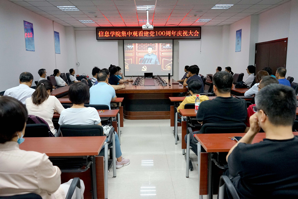 7月1日上午8时,庆祝中国共产党成立100周年大会在天安门广场隆重举行。场内参会师生代表有幸亲眼目睹伟大的中国共产党迎来百年荣耀时刻,激动不已,热泪盈眶,心中充满自豪与喜悦。场外必赢线路检测3003no1在校全体师生积极集会,认真观看建党100周年庆祝大会,党史学习教育再掀新高潮。学院全体中层干部、党委中心组成员在广学楼报告厅主会场,全院教师在瀚学楼1014会议室、博远楼1023会议室,300余名学生代表在学生服务楼多功能厅、励学楼424和527阶梯教室集中观看现场直播。