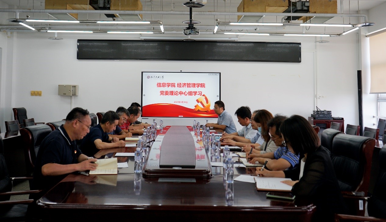 9月14日下午,必赢线路检测3003no1和经济管理学院在瀚学楼1014会议室联合开展党委理论中心组专题学习活动。两个学院理论学习中心组全体成员共计十余人参加此次学习活动。