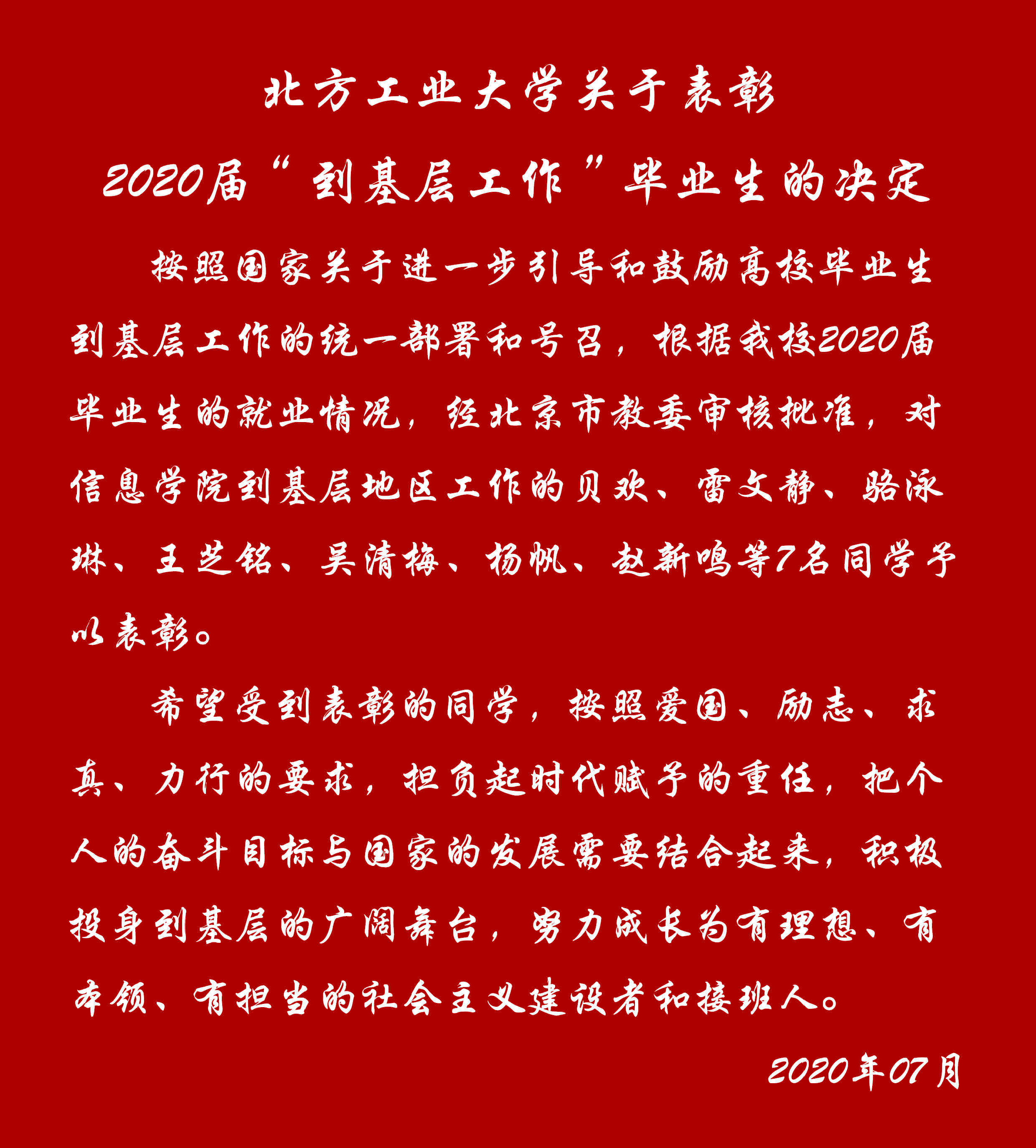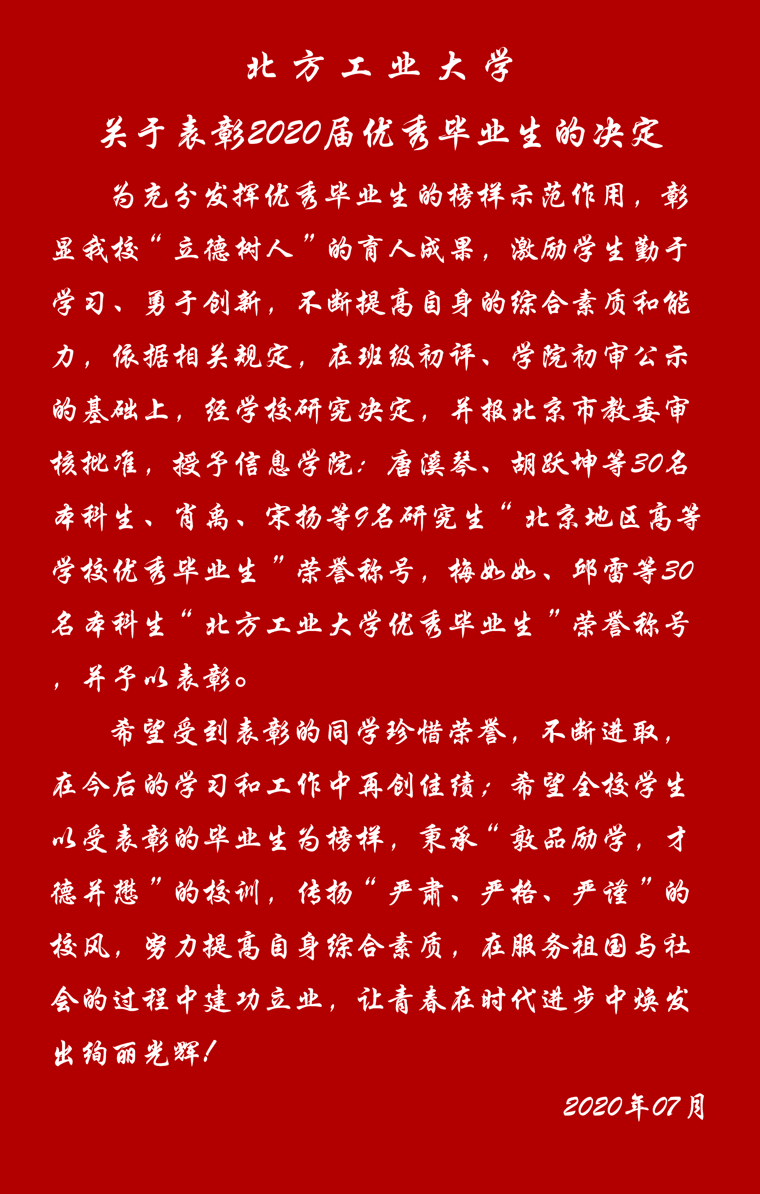 第三项  刘文楷书记宣读优秀毕业生表彰决定