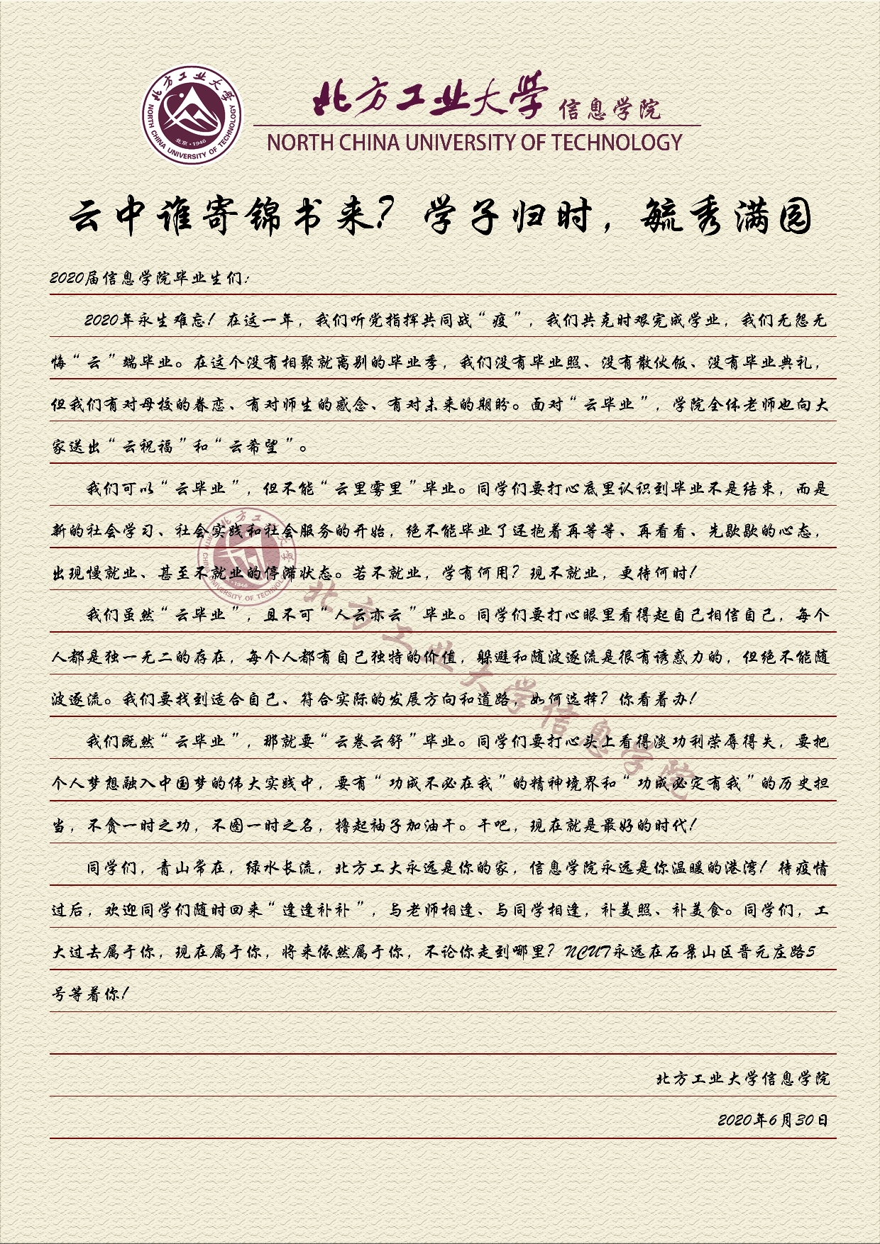 第六项  毕业“寄”云锦书