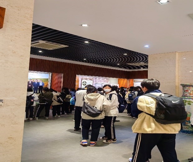 4月21日上午延庆三中高二年级全体师生150余人在校长程来继带领下来必赢官网参观交流。