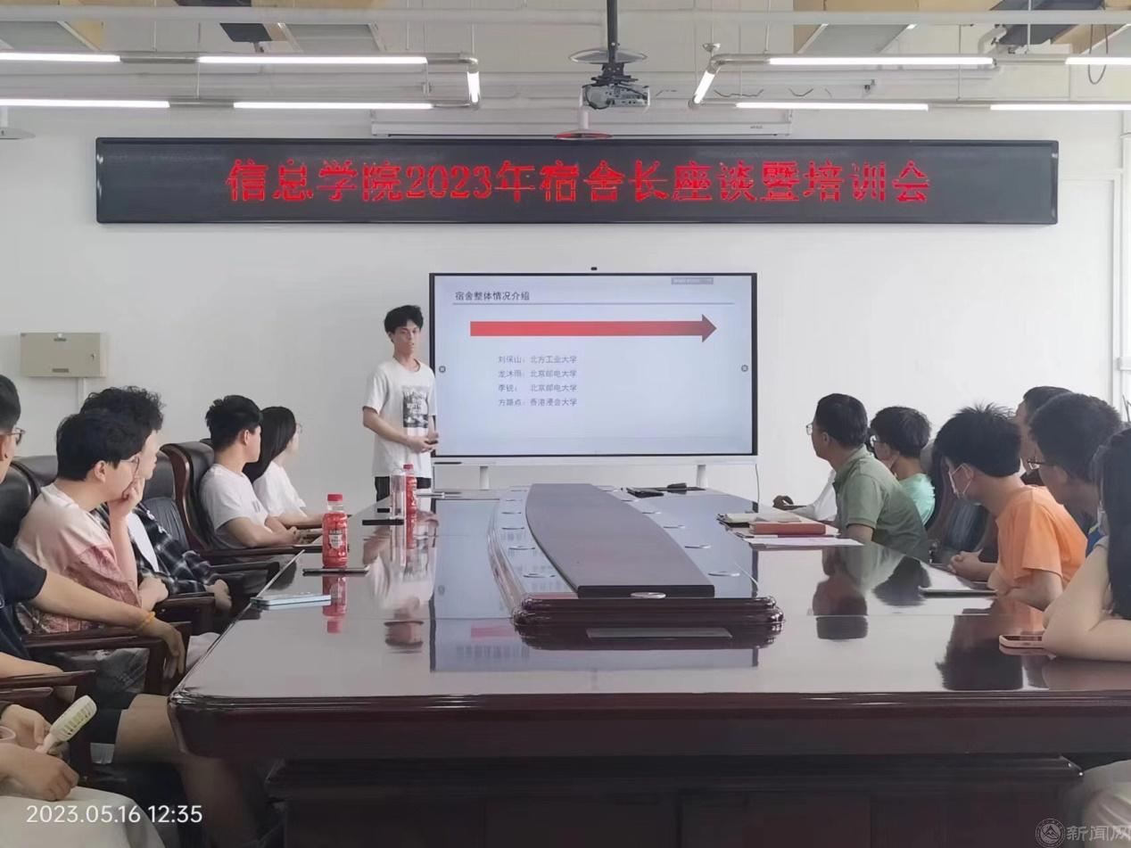 大学生宿舍思政教育已成为高校思想政治教育的重要组成部分,为了进一步推进必赢线路检测3003no1“寓见一线”宿舍思政育人模式,加强和改进学院学生思想政治教育工作,5月16日中午,必赢线路检测3003no1召开2023年宿舍长座谈暨培训会,学院党委副书记陈卫、团委书记杨和家、各年级辅导员和各年级宿舍长参会。
