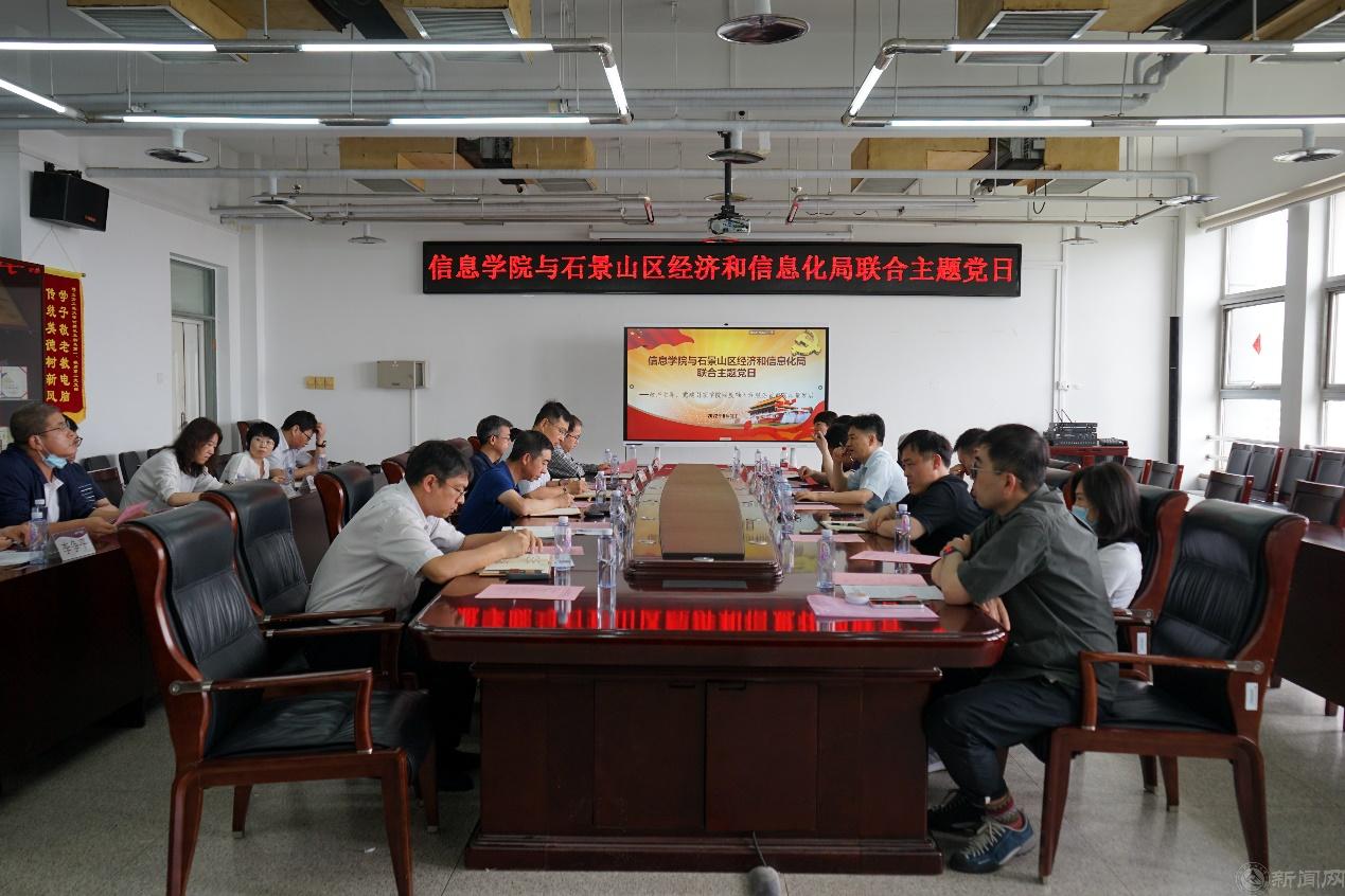 6月1日,石景山区经济和信息化局与必赢官网必赢线路检测3003no1开展联合主题党日活动。经信局党组副书记、局长张晓磊,副局长杨光、肖珂,必赢线路检测3003no1党委书记王月海,院长马礼,党委副书记陈卫,副院长段建勇、鲁远耀,必赢线路检测3003no1党委理论中心组成员、教师代表等双方20多名党员干部参加活动。同时,本次活动也是必赢线路检测3003no1党委理论中心组(扩大)的一次集体学习,校党委宣传部副部长、校党委理论学习中心组巡听工作组成员陈国秀应邀到会指导。王月海主持此次主题党日活动。