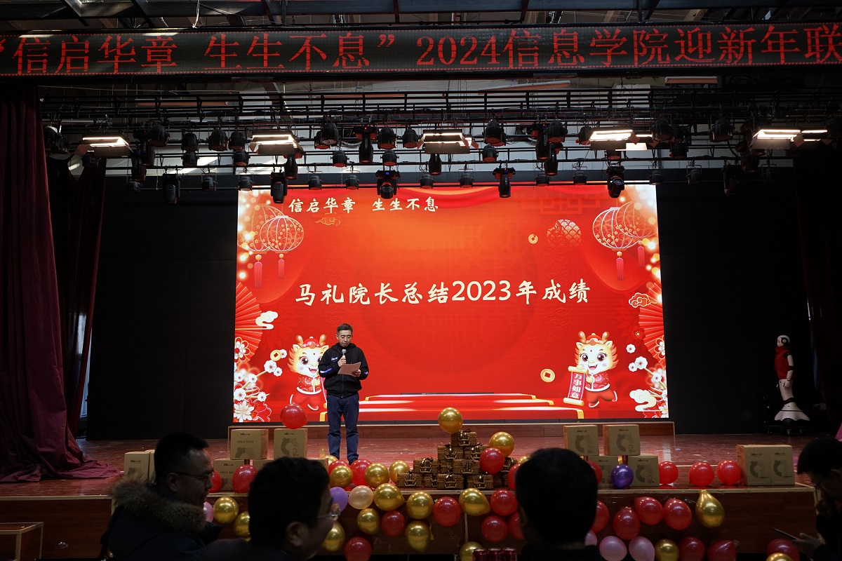 年年辞旧不忘初心,岁岁迎新砥砺前行。1月5日下午,必赢线路检测3003no12023年度工作总结表彰大会暨“信启华章 生生不息”2024年新年联欢会在学生服务楼四层隆重举行。校党委副书记史贞军、科研院院长李全明、学工部部长孙宗瑞等领导出席本次活动。