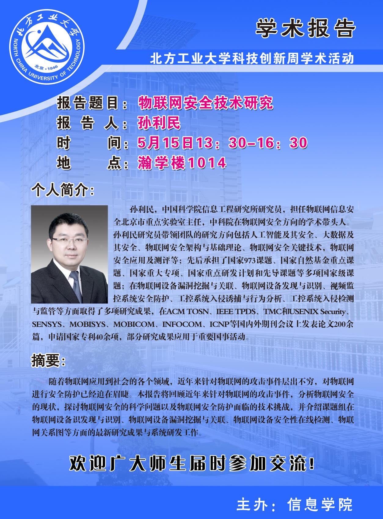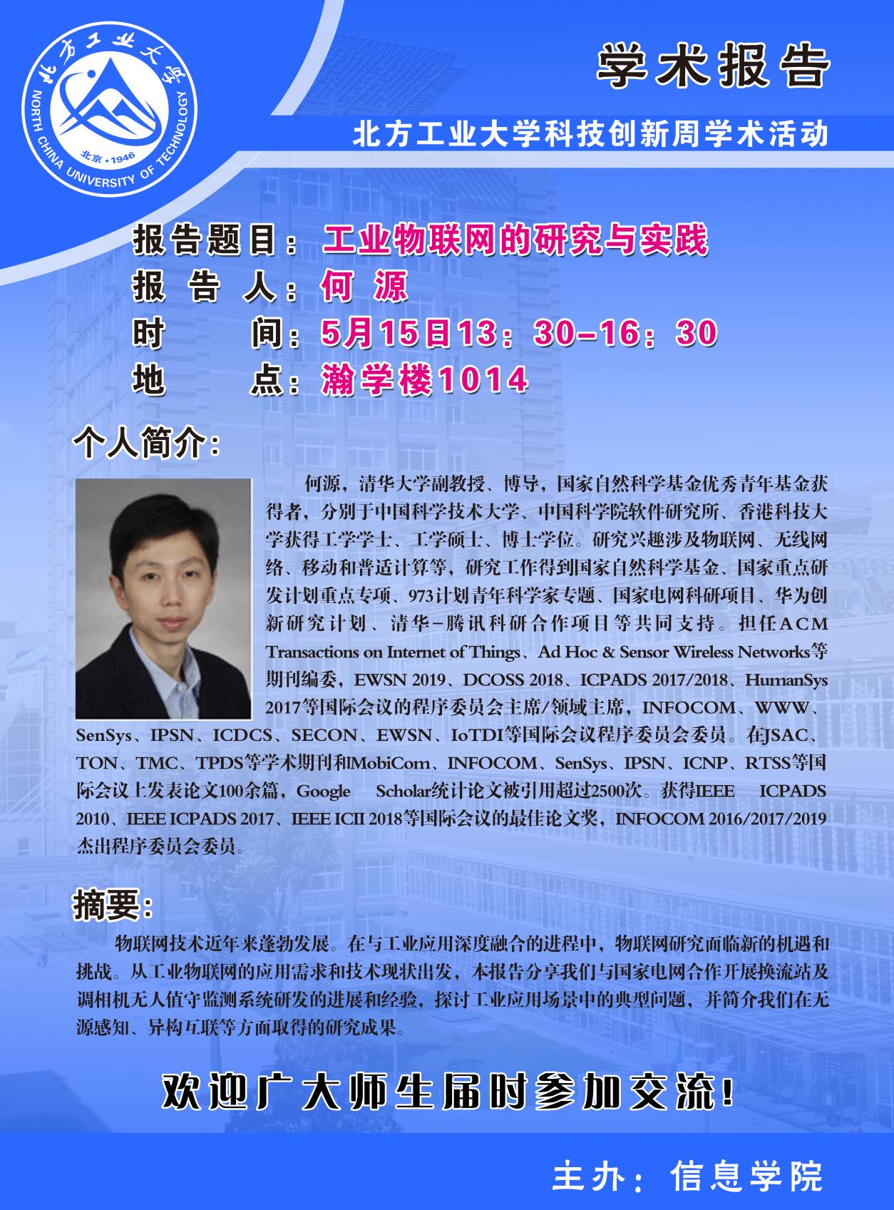 必赢线路检测3003no1科技创新周暨CCF走进高校系列学术讲座安排如下:
